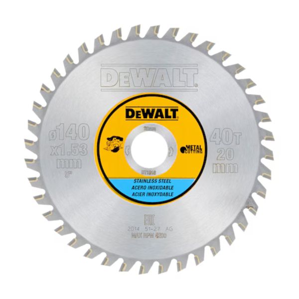 DeWalt 140mm x 20mm 40T TCT Stainless Steel Circular Saw Blade - DT1918-QZ
