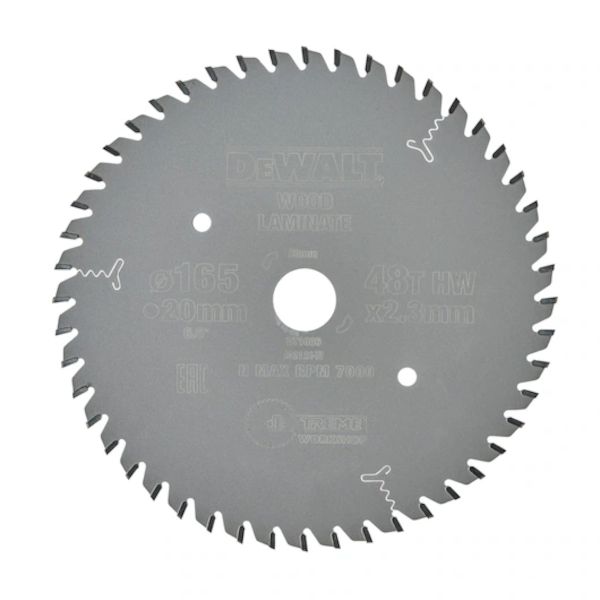 DeWalt 165mm x 20mm 48T Extreme Workshop Plunge Circular Saw Blade for Laminates - DT1086-QZ