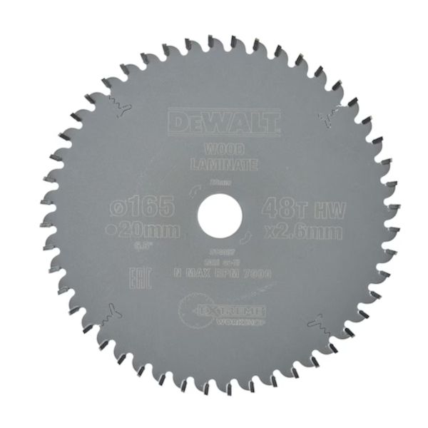 DeWalt 165mm x 20mm 48T Extreme Workshop Triple Chip Circular Saw Blade for Laminates - DT4087-QZ