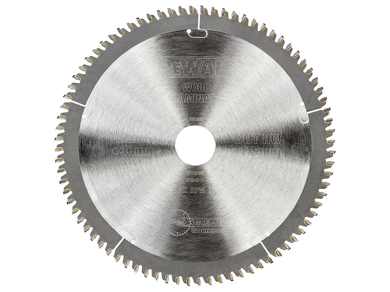 DeWalt 216mm x 30mm 80T TCT Triple Chip Extreme Workshop Circular Saw Blade - DT4286-QZ