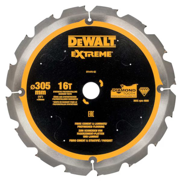 DeWalt 305mm x 30mm 16T Extreme PCD Fibre Cement Circular Saw Blade - DT1475-QZ