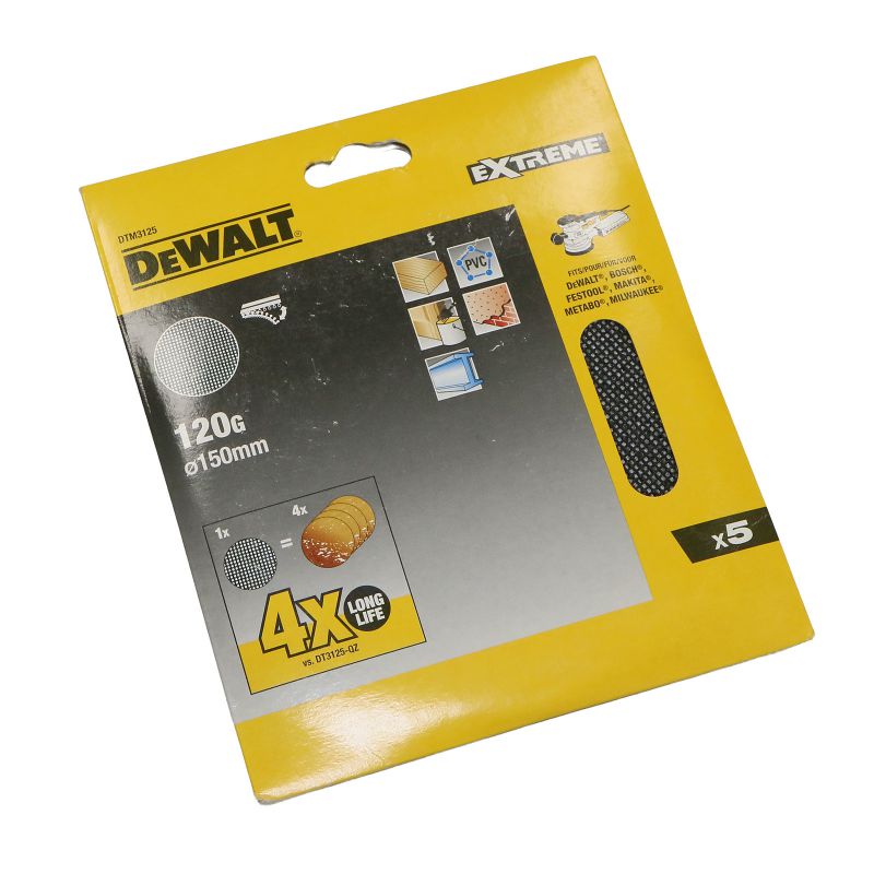 DEWALT Mesh Sanding Discs last at least 4 times longer than traditional DEWALT sandpaper discs. Fibres are drawn away from the surface of the sanding disc into the small holes, and don't sit between the material and abrasive. This optimises the sanding effect.