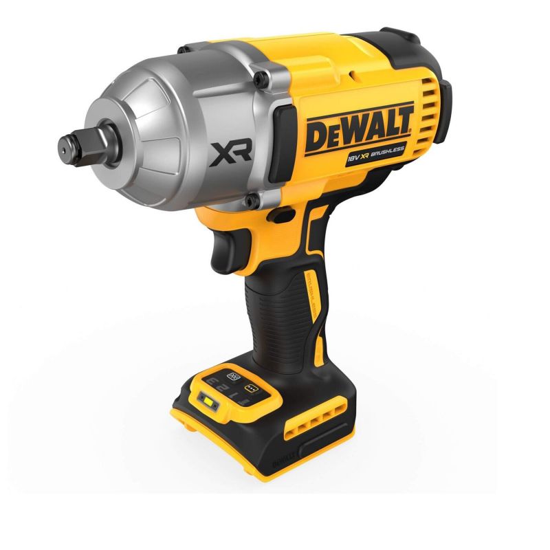 1/2” square drive with hog ring allows quick socket changesVariable trigger allows complete control over all applicationsEfficient brushless motor delivers high performance, extends tool life and allows for much shorter designBright white LED with delay feature for improved visibility and functionality. Now with brightness control so you can dim or turn off the light as you see fitLatest generation 18V BRUSHLESS XR Li-Ion High Torque WrenchComfortable rubber XR grip and switch for greater application comfort and maximum control. Up to 1396Nm of fastening torque ensures removal of the tightest boltsUp to 1898Nm of "breakaway" torque ensures removal of the tightest bolts4 Mode membrane switch with Precision Wrench allows for better application control