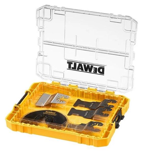 The DEWALT 5 Piece DT20761 Oscillating Blade Set comes in a handy carry case. Suitable for cutting wood, wood with nails, drywall, plasterboard, and plastics. Contains: