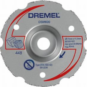 The DSM600 is a multipurpose carbide flush cutting disc. This offset abrasive cutting wheel with carbide grit is designed to cut (straight, plunge and flush) wood and other soft materials.