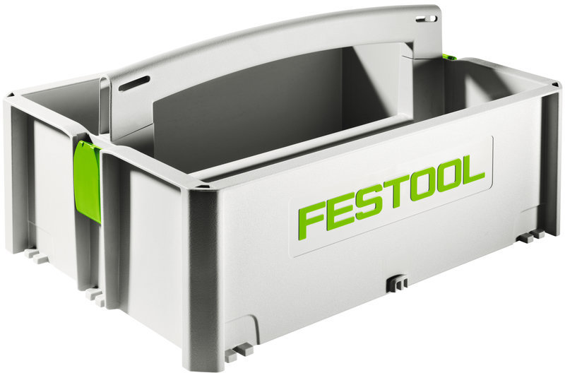 The Festool SYS TB 1 Tool Tote is an very useful addition to your collection of systainers. It is made to the same standards as the rest of the systainer range. They stack together when level full or empty, with the handle seating into the one above.