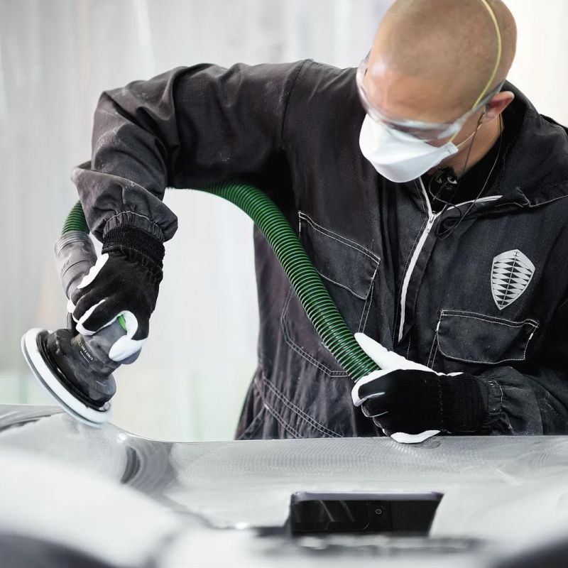 The Festool LEX 3 150/7 compressed air eccentric sander is designed for fast, efficient coarse sanding of flat surfaces, wood, paint and repair compounds. With its powerful 7 mm sanding stroke, it delivers rapid material removal, making it ideal for demanding sanding applications such as the four-step sanding process used in automotive and finishing work.