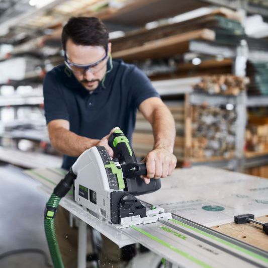 Millions of saws do not lie: The TS has always stood out with its absolute precision cuts, maximum power and extreme durability. The usual reliability remains – but the working speed is unprecedented: The TS 55 now saws at up to twice the speed. In addition, the new generation of cutting blades guarantees perfect cutting quality with maximum cutting performance. With accessories, such as guide rails and the angle stop, or sophisticated and tried-and-test details, such as the splinter guard and extraction system perfectly matched to the machine, the TS 55 provides excellent work results and a top-class sawing system – for every challenge.
