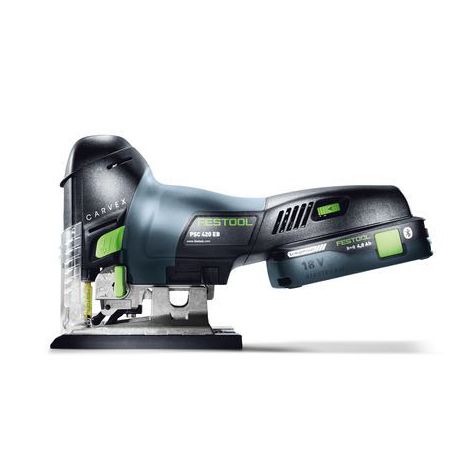 The PSC 420 EB-Basic delivers perfect handling on tight curves thanks to its high-performance EC-TEC motor and threefold saw blade guide. Its ergonomic design, softgrip, and electronic switch-on/off controls provide comfort and control for prolonged work.