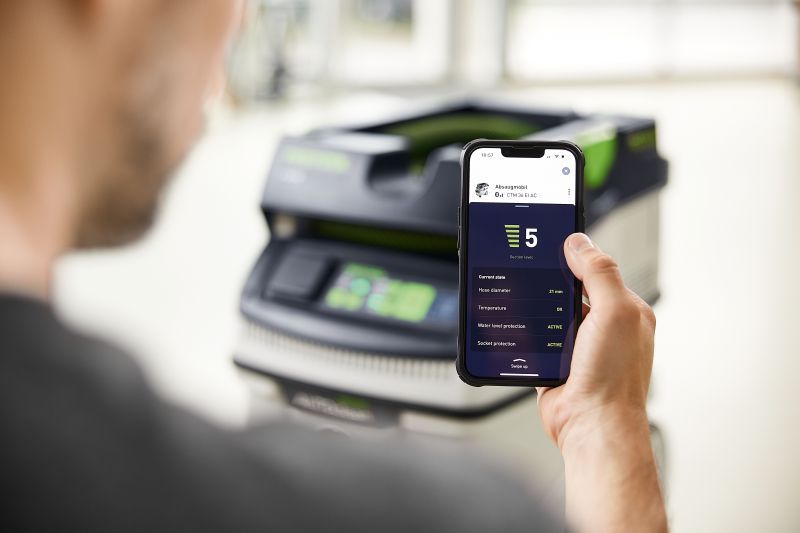 The CTM 36 EI AC offers highly effective automatic filter cleaning (AUTOCLEAN) for consistently strong suction, longer working intervals, and extended filter life with minimal maintenance. Touch control and Bluetooth® connectivity allow intuitive operation and integration with the Festool app for adjusting cleaning intervals. The anti-static, smooth suction hose ensures high efficiency and smooth operation. T-LOC enables fast installation of Systainers on the extractor.