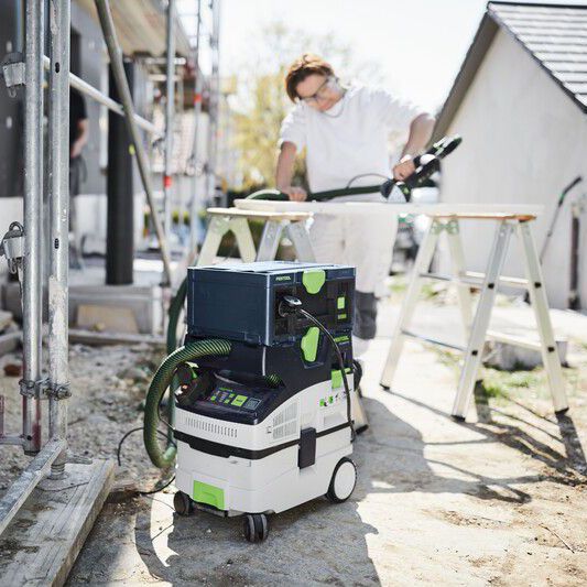 Integrated Bluetooth® functionality allows automatic start-up via Festool Bluetooth® battery packs or optional remote control, while the smooth conical suction hose improves airflow and prevents snagging during use. With intuitive touch controls, external filter access, and SYS-Dock Systainer integration, the CTL MIDI keeps workflows efficient and organised on-site.