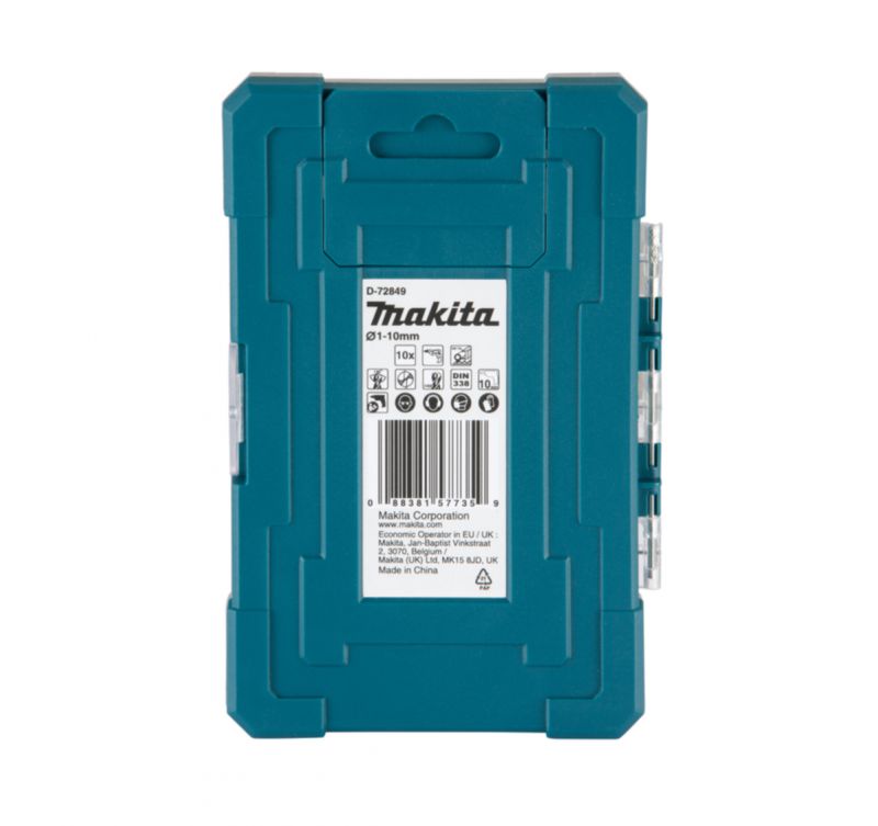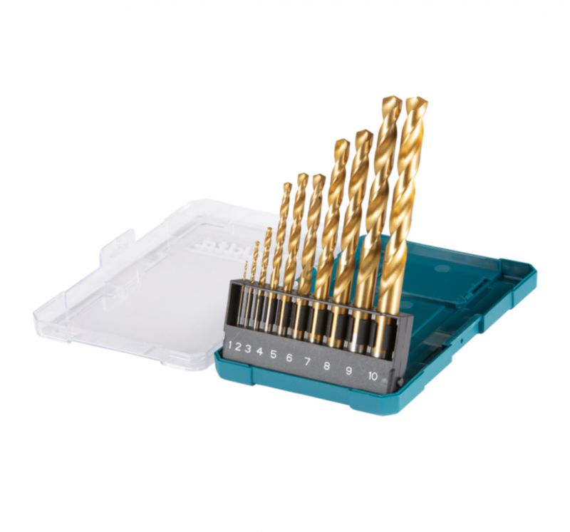 This set includes HSS-TiN drill bits. A titanium nitride coating helps to give the bits a longer life. The shape of the grooves are ground from the block, which gives a smooth finish to the surface of the bit, whilst he 135° split point of the tip ensures stability during use and fast start ups. Cylindrical shank fits most impact drills.
