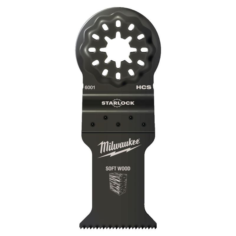 The Milwaukee 35 x 42mm Starlock Multi-Tool Blade 48906001 is an ideal blade for trade professionals as well as DIY enthusiasts. It has a Starlock reception meaning it is compatible with the most popular oscillating tools, whether you own a Milwaukee Tool or other brands, such as Makita, Dewalt, Bosch and many more. It is a 35mm wood plunge cut blade perfect for carpenters and the like. It is 42mm long and can be used for plastic as well. They are designed to be durable and robust and provide high-quality cuts. Made from HCS metal it can withstand the length of time. This is a single blade, supplied on its own.