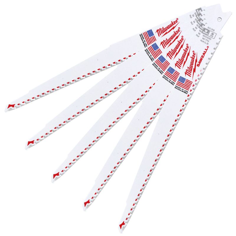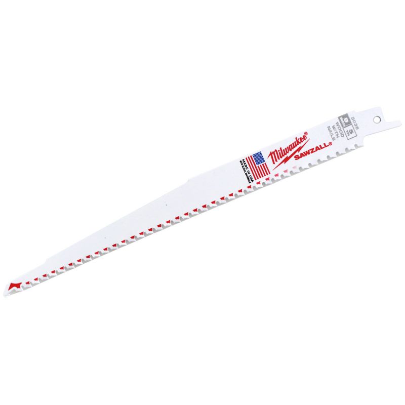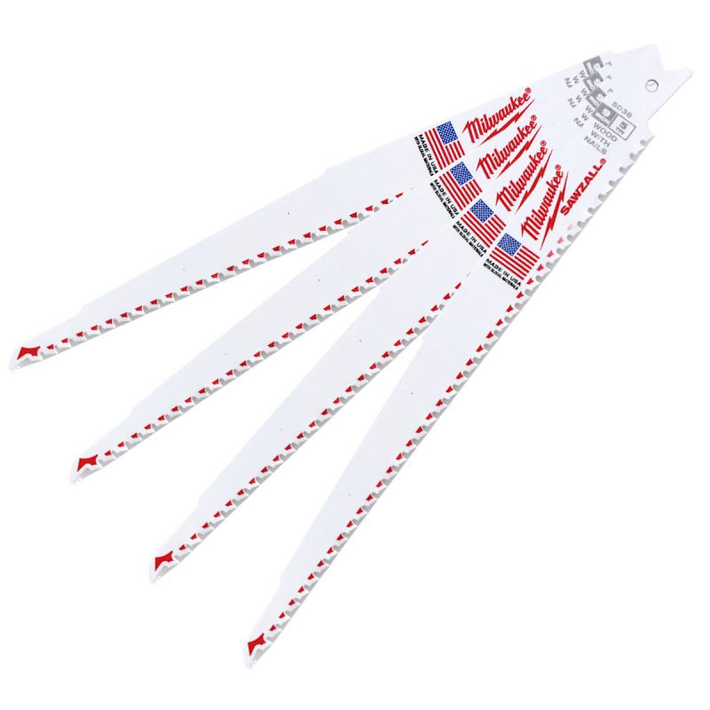 Milwaukee SAWZALL® Sabre Blades with FANGTIP™ for faster plunge cutting and reaching into restricted areas, and NAIL GUARD™ for protecting the tooth during nail impacts for increased durability and life time.