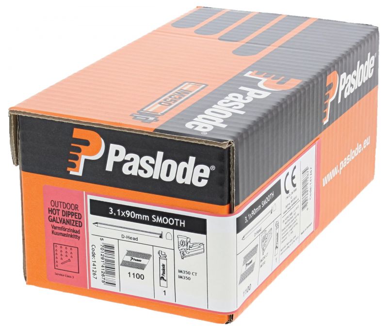 Paslode 3.1 x 90mm Smooth Hot Dip Galv Nails Qty 1,100 - 1 Fuel Cell to suit IM350+ IM350CT - 141267