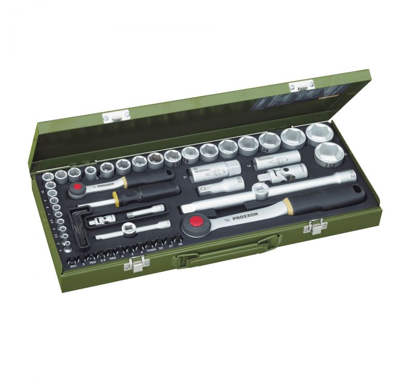 Proxxon 23040 56-Pieces Socket Set with 1/4" and 1/2" Ratchet