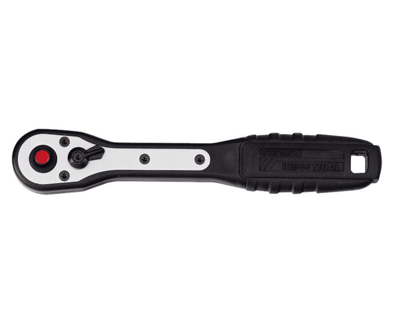 Precision ratchet drive with 44 teeth for long service life and high torque. Reverse lever for ratcheting direction. Quick-release button for releasing sockets instantly. With handy, soft-touch Dupont HYTREL grip and practical hole for hanging up.