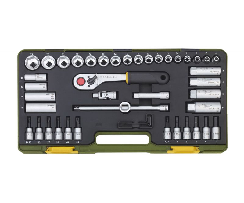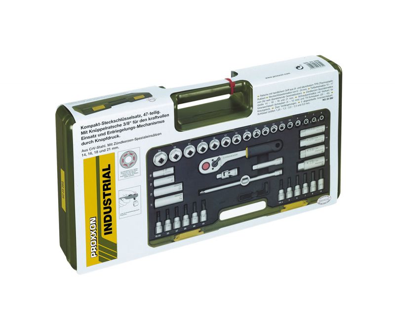 Proxxon 23282 47-piece Compact Socket Set with 3/8" Baton Ratchet Wrench
