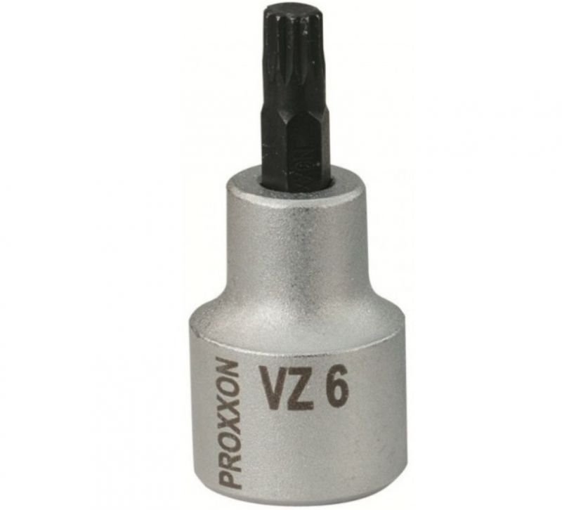 The Proxxon 23629 3/8" spline socket bit VZ 6, 50 mm length is a specialist tool engineered for use with XZN, or triple square, head bolts, which are frequently encountered in various European automotive applications.