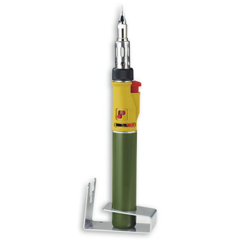 Versatile gas-powered soldering set for precise work with open flames or via catalyst. Ideal for soldering, hot cutting, wood burning, shrink tubing, and repairing surface defects in wood such as cracks and dents.
