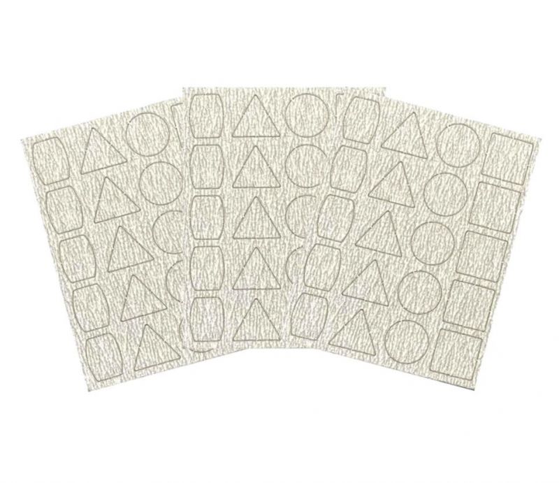 Three sheets, each with 20 pads in different shapes. Silicon carbide, self-adhesive. 240 grit