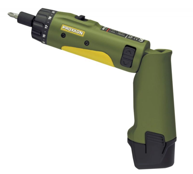 Automatic spindle lock when the set torque is reached. Practical: if needed, screws can be finally tightened at higher torque by hand. Receptacle for 1/4"-hexagon-standard bits. Bits are securely held and released by moving the locking ring. Bright LED illuminates dark working areas. Including 12 standard bits of industrial quality. Thereof nine bits of 25mm (PH 0 - 1 - 2, HX 3 - 4 - 5, TX 10 - 15 - 20) as well as 3 bits in extra-long version of 80mm (PH 1 - FD 3 - 5,5), lithium-ion battery Li/A2 and rapid charger LG/A2.