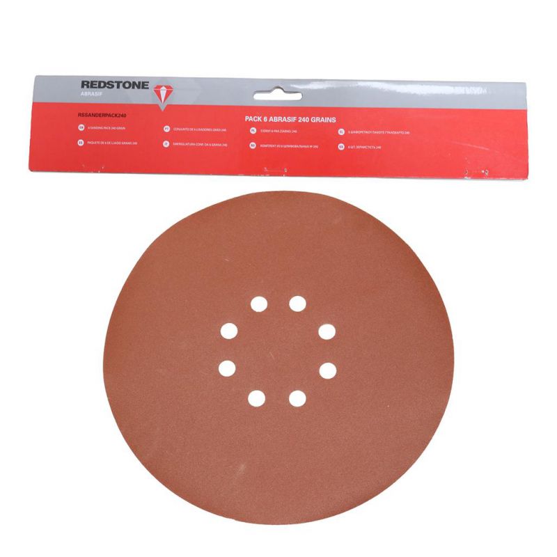 Redstone Abrasif Abrasive 240 Grains Grit Round Sanding Sheet Pack Of 6 230mm
