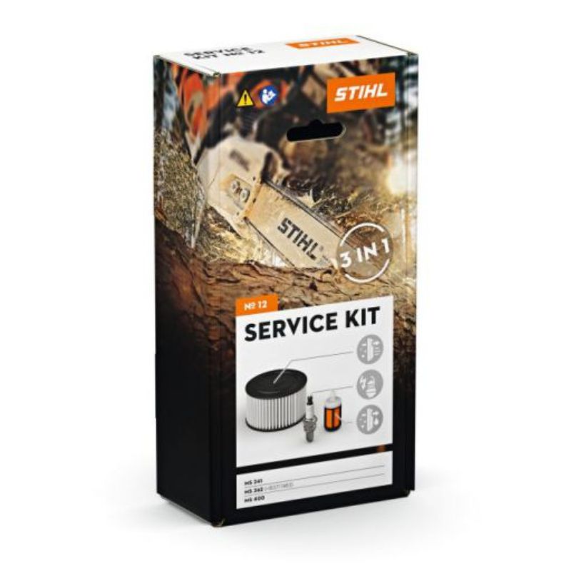 The STIHL Service Kit 12 is a genuine maintenance kit designed for regular servicing of compatible STIHL petrol chainsaws. Routine replacement of key service parts helps ensure reliable starting, consistent cutting performance, and extended engine service life.
