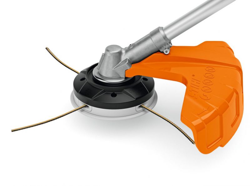 Double mowing line cutting tool, for mowing and thinning work. Up to two lines can be easily inserted. Compatible with many different sizes and types of mowing line.