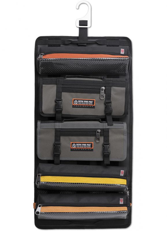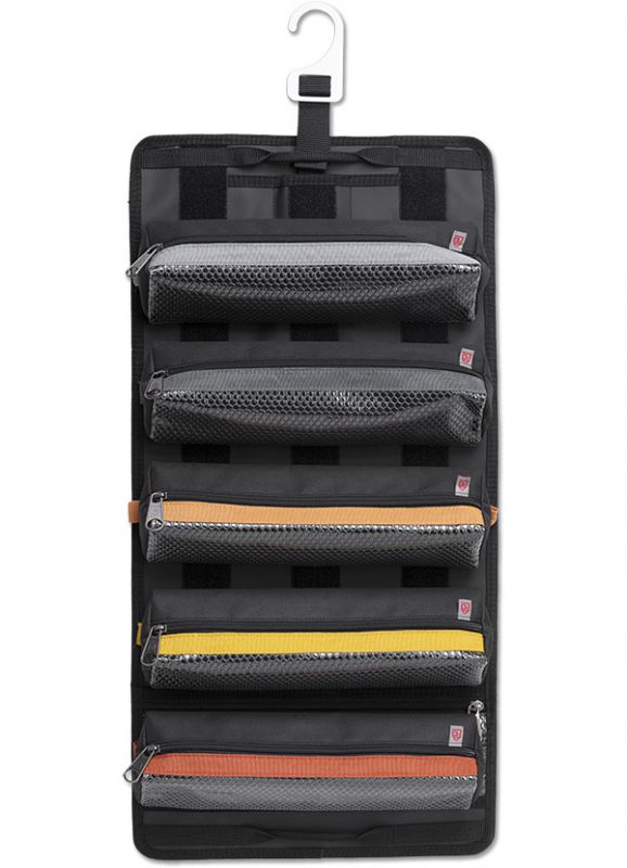 The TR-LC is a highly functional, large modular tool roll designed for job sites and roadside repairs. It features a mountable design with a hanging hook to keep it off the ground and out of the mud. This large tool roll is easily carried with an ergonomic grip handle and a shoulder strap when rolled up, and two secondary handles for quick transport when unrolled. The TR-LC includes five removable storage pouches and rolls: three multi-colored large bulk storage pouches (“RP-LCs“) designed to contain items while hanging; a wrench roll (“WR-LC“) for a full wrench set, and a socket roll (“SR-LC“) for a full socket set. Both the WR-LC and SR-LC also function as standalone rolls with external zippered pockets and carrying handles. The RP-LCs, WR-LC, and SR-LC utilize heavy duty Velcro to ensure a secure attachment and easy detachment on the inside of the TR-LC so that you can grab them and go as you need. Additional WR-LCs, SR-LCs, and an ADDITIONAL 2-Pac of RP-LCs (shown below as RP-LC (2 PAC) and offering different colors (dark gray and light gray) than the RP-LCs that come with the TR-LC) can be purchased separately to customize the layout.