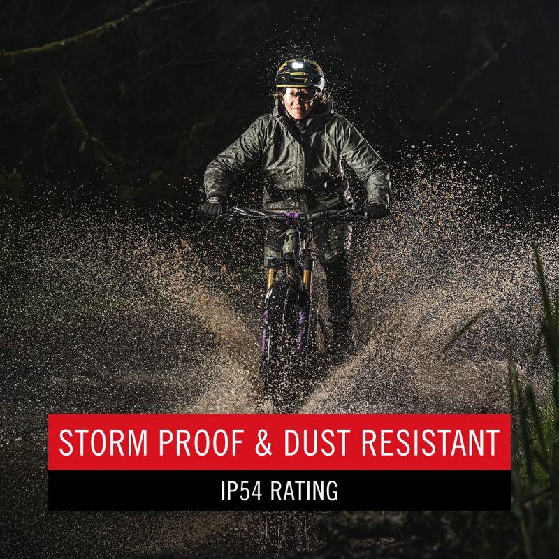 | Rely on the built-in ZITHION™ rechargeable battery for strong performance and cost savings. | Shine bright through rain, splashes, and storms with a rugged IP54-rated build that's water- and dust-resistant—ideal for tough, dirty jobs. |