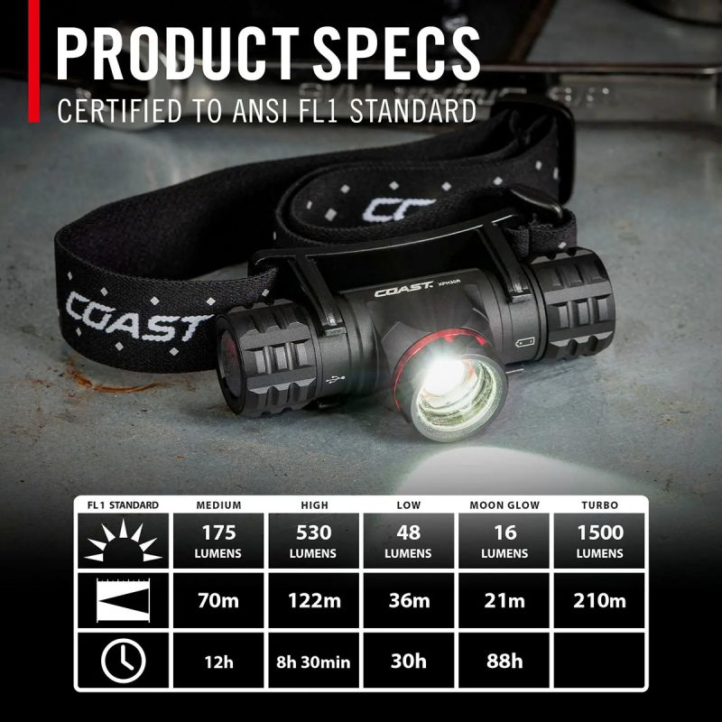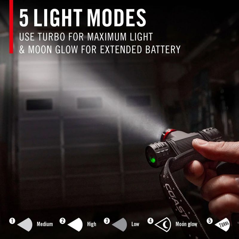 | Shine bright through rain, splashes, and storms with a rugged IP54-rated build that's water- and dust-resistant ideal for tough, dirty jobs. | This light features standard modes plus COAST’s Turbo Mode, delivering overpowered brightness when needed most in critical moments. |