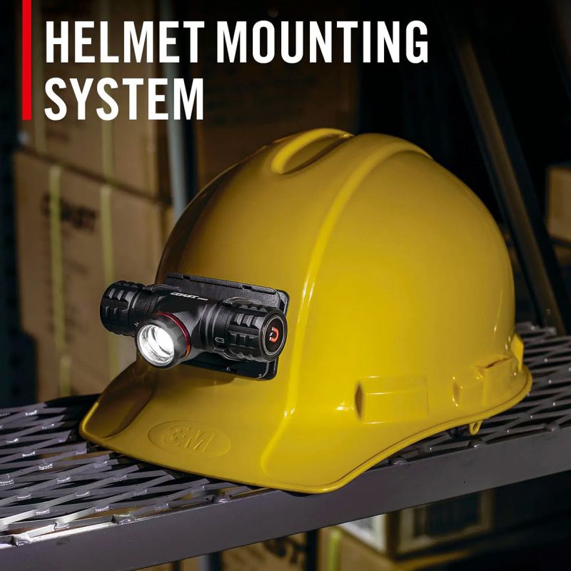 | Count on steady performance with a rugged headlamp that mounts securely to a hardhat using silicone-lined straps or included mounting clips. | Shine straight ahead, up, or down by adjusting the headlamp’s hinge and tilt, aligning the beam precisely with your line of sight for optimal visibility. |