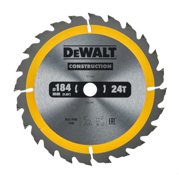 DeWalt 184mm x 16mm 24T Construction Circular Saw Blade - DT1939-QZ