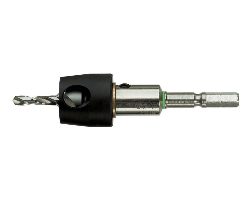 The drill countersink with adjustable depth stop is perfectly suited to diverse visible screw fittings in wood, acrylic, aluminium or mineral material. It enables drilling and countersinking in a single work step. Versatile thanks to an adjustable drilling and countersinking depth and extremely durable as a result of the special drill bit's long service life. The drill countersink is compatible with the entire Festool CENTROTEC system to quickly change between additional applications.