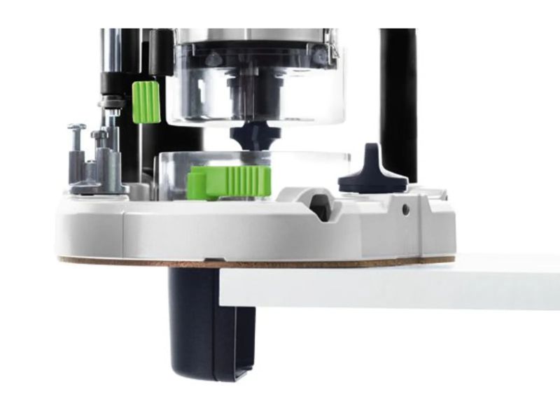 The unique chip deflector enables optimal dust extraction when routing on the edge and guarantees excellent suction power of nearly 100% when routing edges in combination with the dust extraction attachment and a Festool extractor.