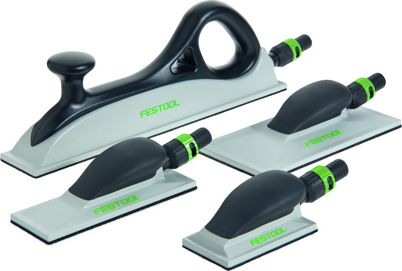 You can always find the right one here – four sizes in a set. The right extractable hand-sanding block for every application. The suction power can be regulated as needed by adjusting the bypass. No damage is done to the surface due to the rounded-off corners of the burr layer. The ergonomic handle prevents blisters forming on your hands. Can be used with the Festool extractor hoses thanks to the integrated adapter.