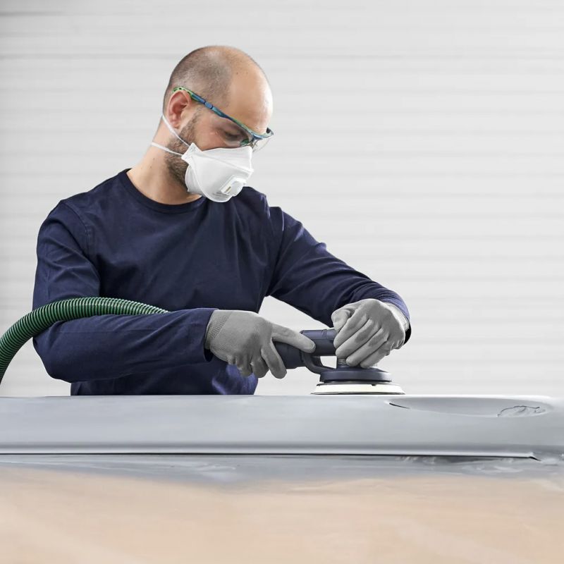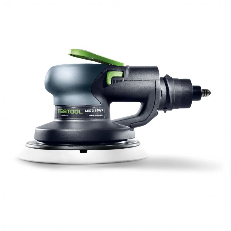 The Festool LEX 3 150/3 compressed air eccentric sander delivers an exceptionally fine sanding finish thanks to its precise 3 mm sanding stroke. It is ideal for final sanding of filler within a four-step sanding process, as well as fine finishing of curves and blending zones.