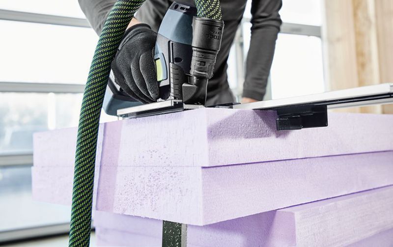 The Festool ISC 240 HPC 4,0 EBI-Plus 18V is the perfect solution for mobile insulation work, whether freehand or guided with a rail and angle stop system. It handles mineral fibre, natural fibre, and PUR insulating boards efficiently and accurately.