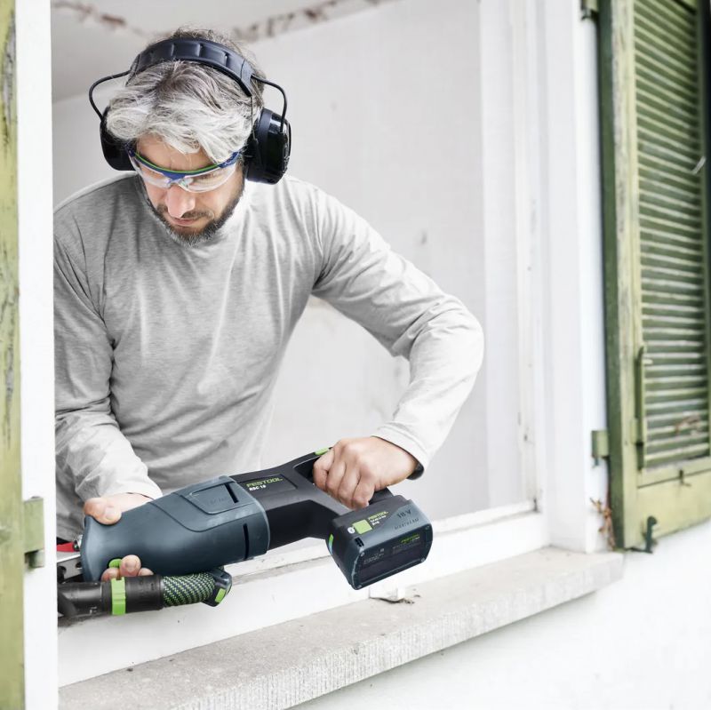 This EBI-Plus version includes a 5.0Ah battery for extended runtime on site and comes stored securely inside a Systainer for protection, transport and system compatibility across the Festool storage range.