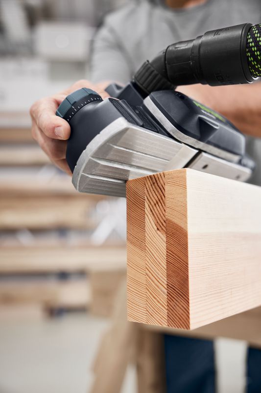 The HLC 82 cordless planer is your dependable tool for swift adjustments on construction sites and in workshops. From chamfering beams and edge transitions on wooden wallboards to creating rebates on doors or fitting skirting and infill panels, this cordless planer offers application flexibility.