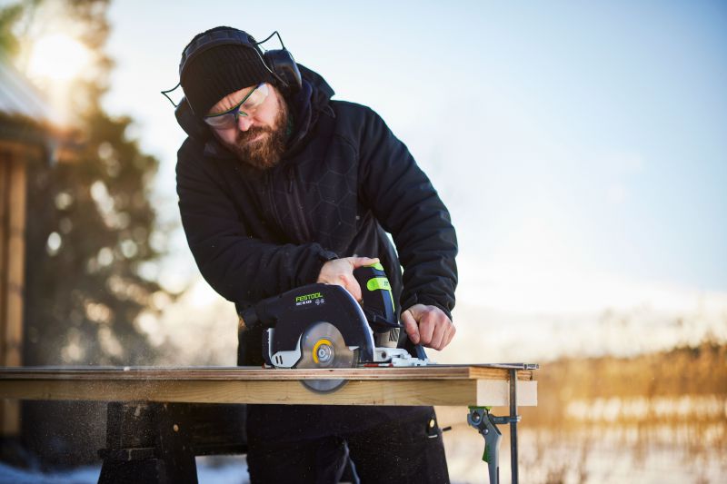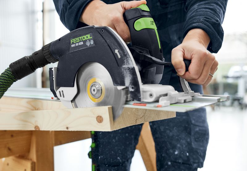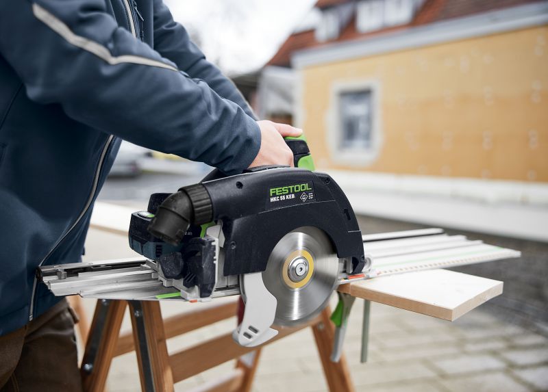 Whether you're on the roof or down on the ground – with the Cordless circular saw HKC 55 K, you’ve got the power and flexibility you need. Speedy cross-cuts with the cross-cutting guide rail FSK, precise cuts with the guide rail FS, and accurate angled cuts: the HKC 55 K delivers serious power and versatility for your everyday tasks. Features like the clever KickbackStop, the pendulum hood remote control, the guide wedge, and the spring-assisted plunge-cut function make for top-notch working conditions – safe and comfy. You can always count on maximum power: the HKC 55 K makes the most of the super-powerful 8.0 Ah Battery pack. The specially designed thin-cut saw blades have a cutting width of 1.6 mm and are perfect for this circular saw. Together, you'll not only enjoy amazing cutting performance, but also a longer battery life – for the best performance on every project.