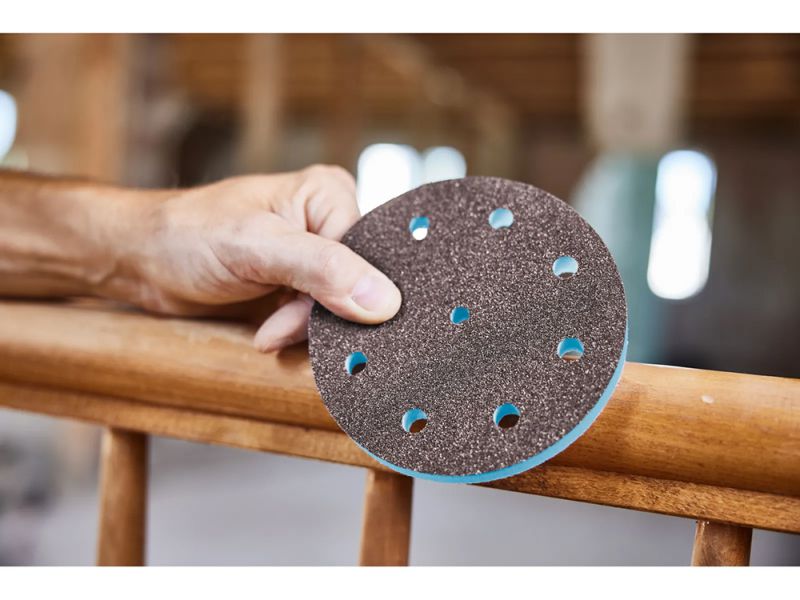 Its soft foam core, consisting of 13 mm polyurethane, adapts perfectly to the surface of the workpiece. This results in uniform pressure distribution, effectively preventing breakthrough sanding and the formation of grooves.