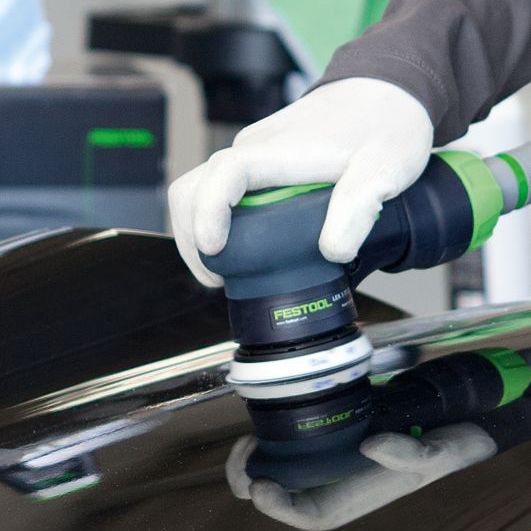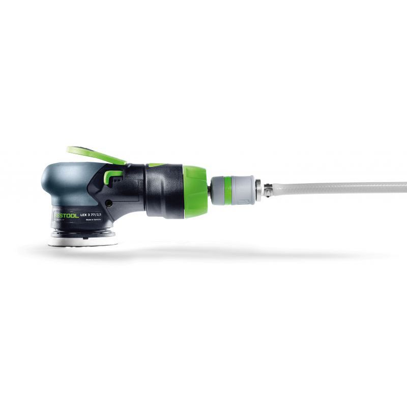The Festool LEX 3 77/2.5 compressed air eccentric sander is ideal for professional finishing work on small surfaces, transitions and edges. With its compact 77mm sanding pad and lightweight design, it provides excellent control for spot repairs, blending and precision sanding applications.