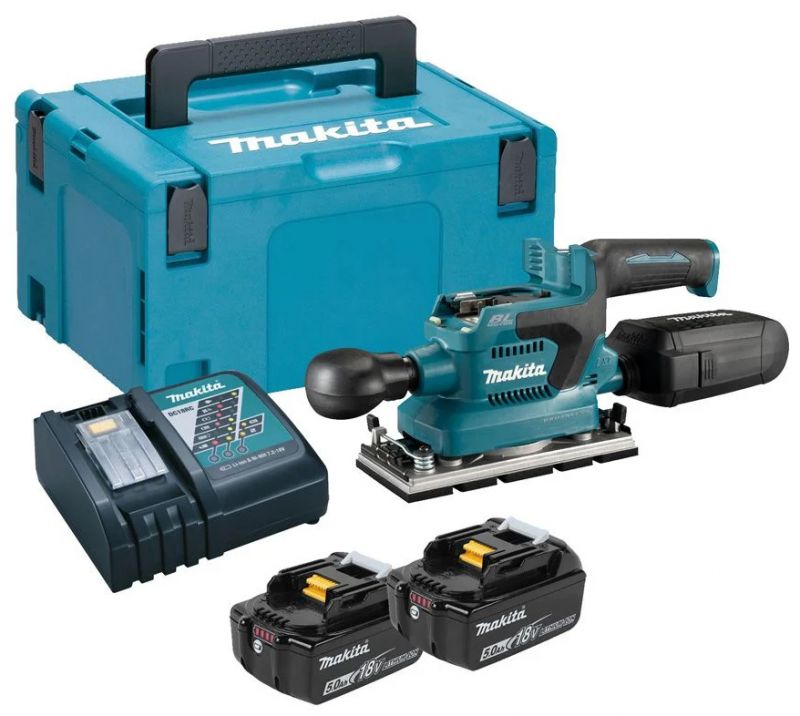 The Makita DBO382 LXT Finishing Sander is equipped with a powerful brushless motor. 3-stage electronic speed control and constant speed control allow you to precisely control your work, providing better end results. Its ergonomic rubberised grip and handle provided added user comfort. The front grip is detachable without tools for corner sanding.