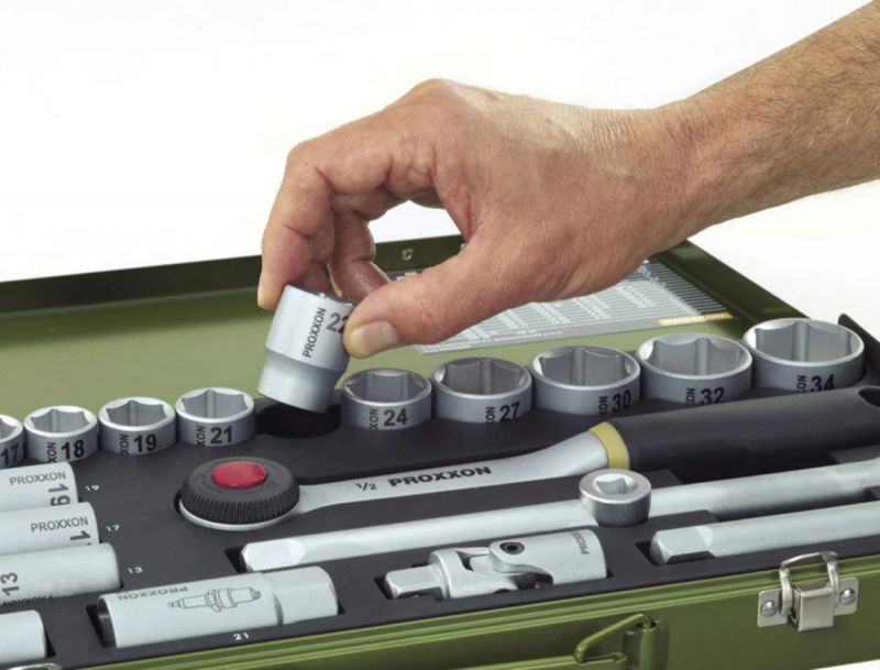 Proxxon 23000 29 Pieces 1/2" Drive Socket Set with Ratchet