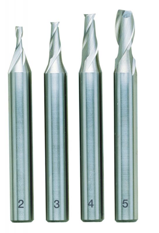 All cutters with 6mm shaft. Cutters of Ø 2 - 3 - 4 and 5mm. Double fluted according to DIN 327. Made of HSS-Co5. Comes in wooden box with sliding lid.