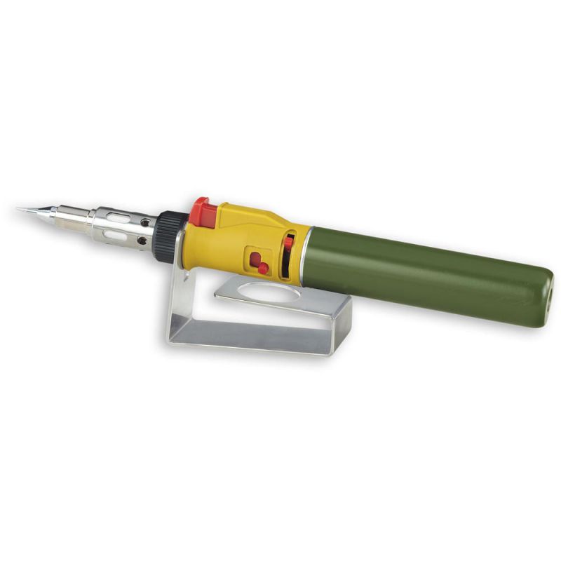 Versatile gas-powered soldering set for precise work with open flames or via catalyst. Ideal for soldering, hot cutting, wood burning, shrink tubing, and repairing surface defects in wood such as cracks and dents.