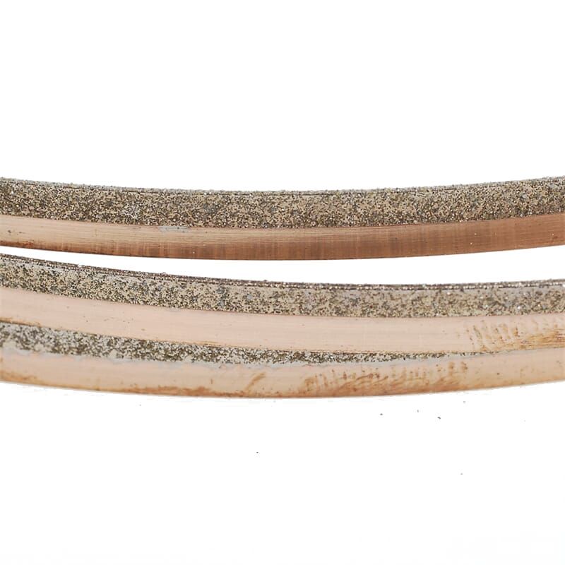 Diamond-coated bandsaw blade designed for cutting hard and brittle materials such as stone, ceramic, glass, and GRP on Proxxon bandsaws.