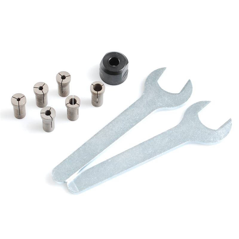 Includes one collet each of: 2.35 mm, 3.0 mm, 3.2 mm, 4.0 mm, 5.0 mm, and 6.0 mm